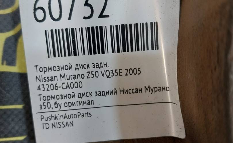 Диск тормозной Nissan Murano 2005 43206CA000 Z50 VQ35E, задний