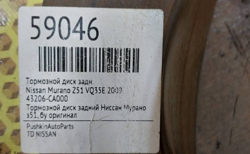 Диск тормозной Nissan Murano 2009 43206CA000 Z51 VQ35E, задний