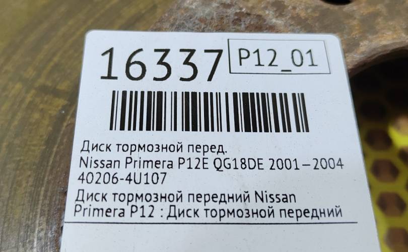 Диск тормозной Nissan Primera 2001—2004 402064U107 P12E QG18DE, передний