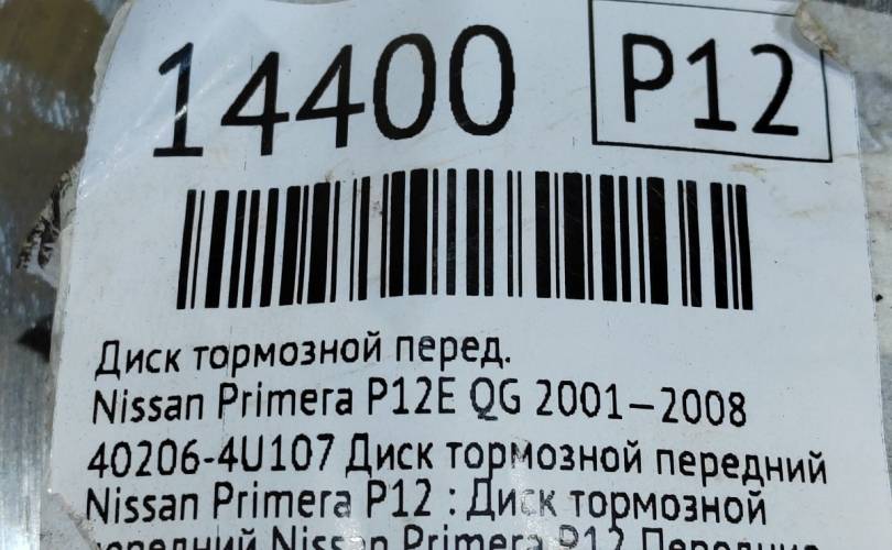Диск тормозной Nissan Primera 2001—2008 402064U107 P12E QR20DE, передний