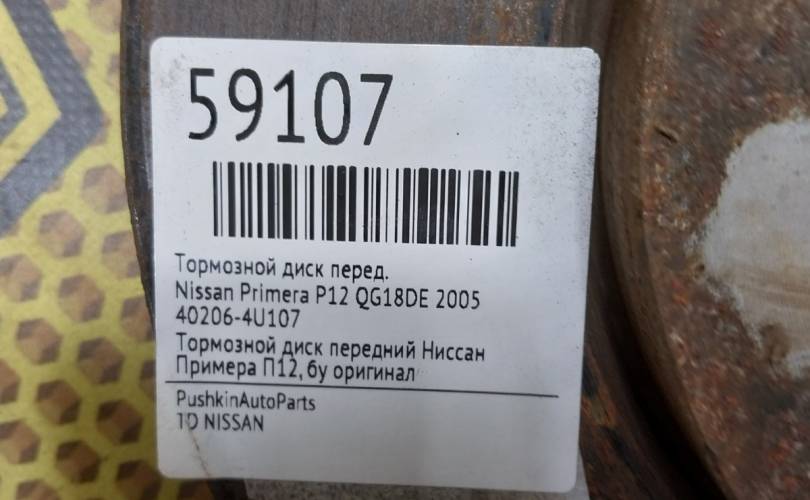 Диск тормозной Nissan Primera 2005 402064U107 P12 QG18DE, передний