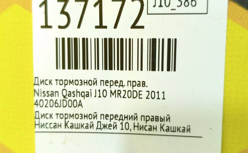 Диск тормозной Nissan Qashqai 2007 40206JD00A J10 MR20DE, передний правый