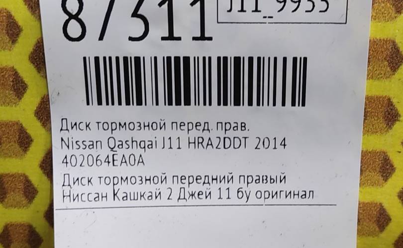 Диск тормозной Nissan Qashqai 2014 402064EA0A J11 HRA2DDT, передний правый