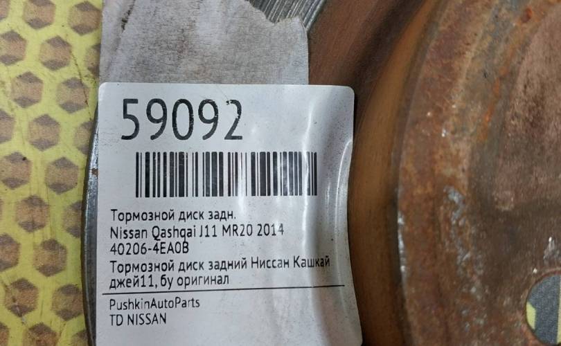 Диск тормозной Nissan Qashqai 2014 402064EA0B J11 MR20, задний