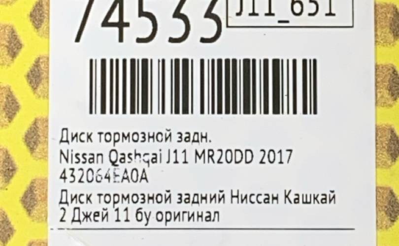 Диск тормозной Nissan Qashqai 2017 432064EA0A J11 MR20DD, задний