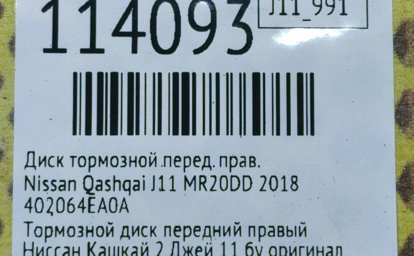 Диск тормозной Nissan Qashqai 2018 402064EA0A J11 MR20DD, передний правый