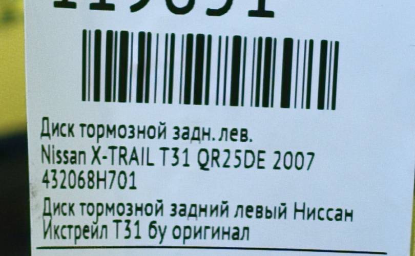 Диск тормозной Nissan X-TRAIL 2007 432068H701 T31 QR25DE, задний левый