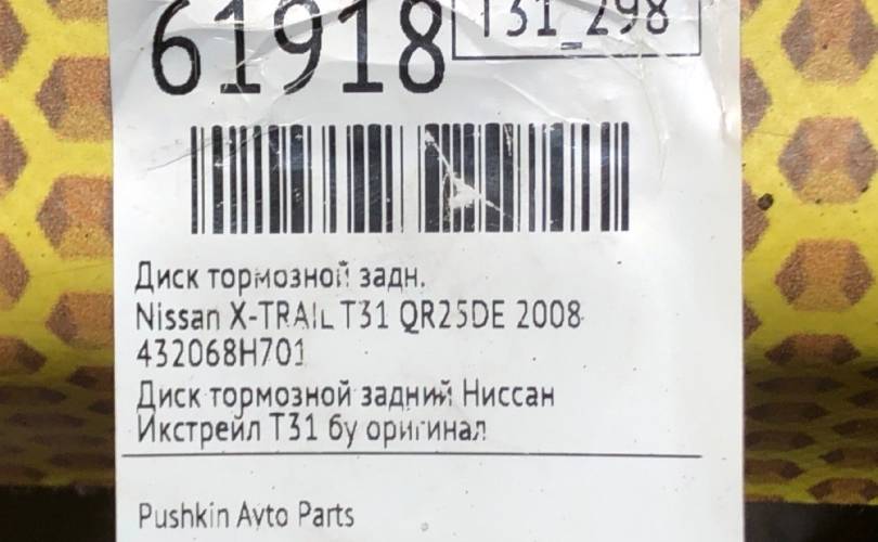 Диск тормозной Nissan X-TRAIL 2008 432068H701 T31 QR25DE, задний левый