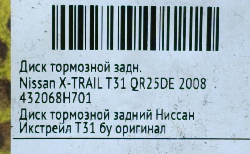 Диск тормозной Nissan X-TRAIL 2008 432068H701 T31 QR25DE, задний