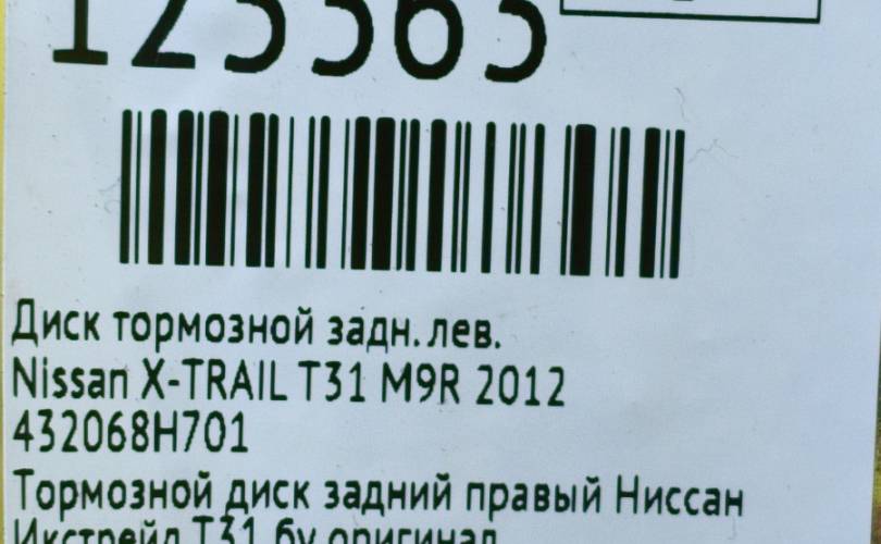 Диск тормозной Nissan X-TRAIL 2012 432068H701 T31 M9R, задний левый