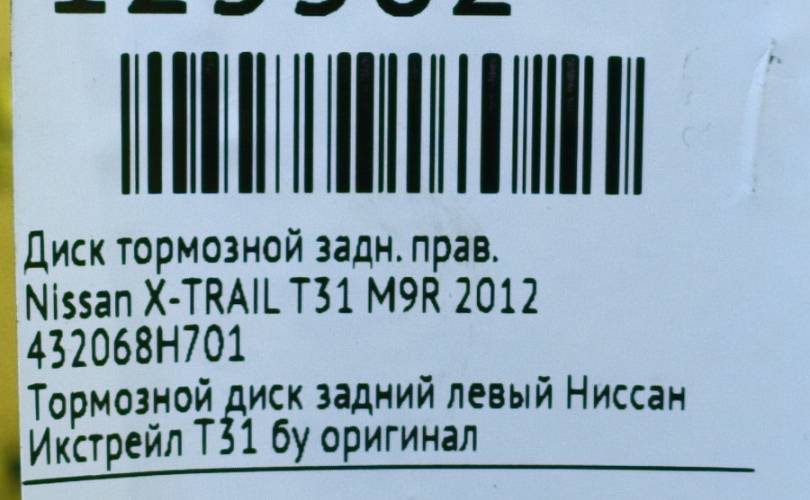 Диск тормозной Nissan X-TRAIL 2012 432068H701 T31 M9R, задний правый