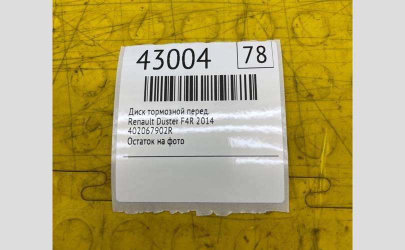 Диск тормозной Renault Duster 2014 402067902R F4R, передний