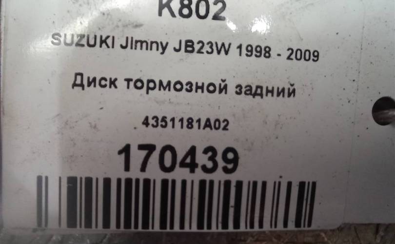 Диск тормозной задний на SUZUKI JIMNY III рестайлинг (2005—2012) 4351181A02