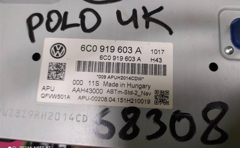 Дисплей экран магнитолы VW Polo 5 2015-2019 сенсор