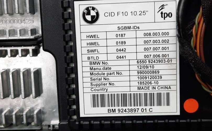 65 50 9243897 - Основной монитор салона дисплей информационный iDrive экран системы мультимедиа 10,25"