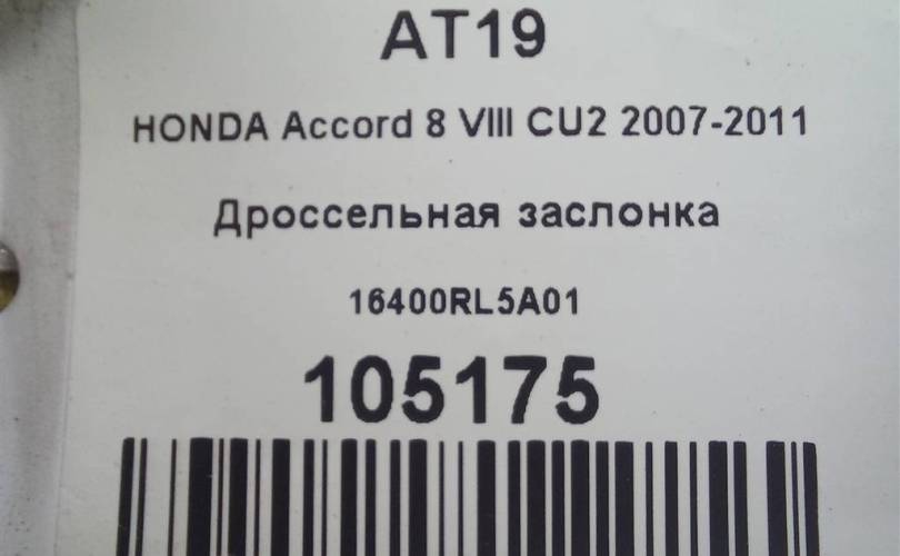 Дроссельная заслонка на HONDA Accord VIII (2007—2011) 16400RL5A01