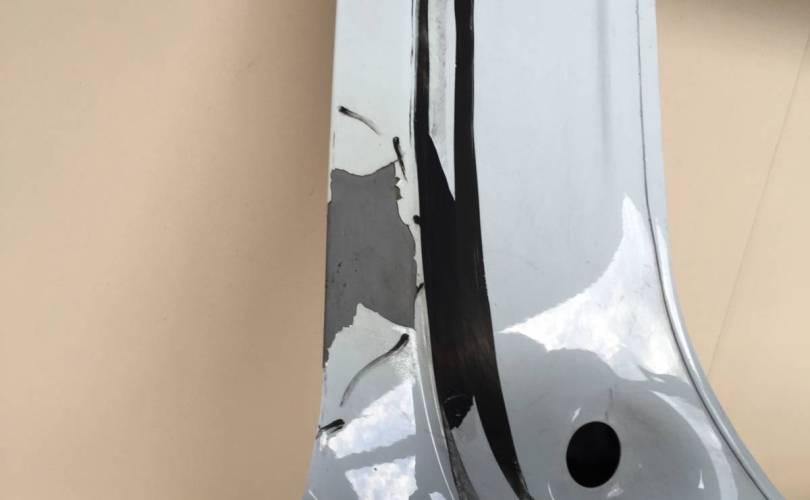 Оригинал. Повреждения в левой части. Вмятины, царапины. Дефекты отмечены маркером.