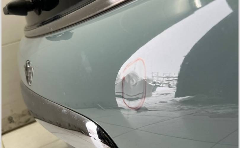 Имеется небольшая вмятина, царапины, сколы на спойлере.