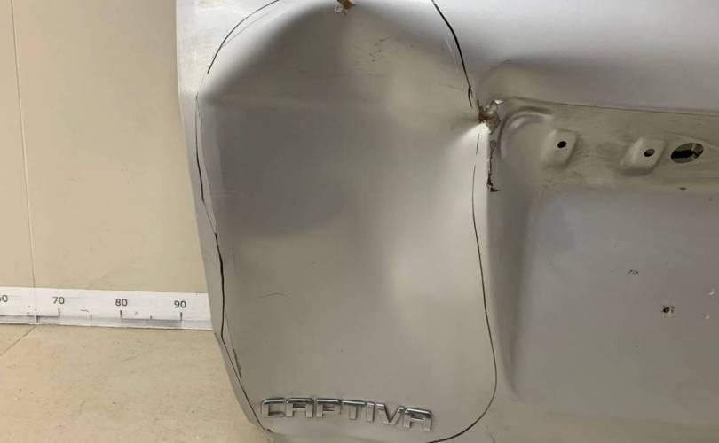 Без спойлера. Деталь демонтирована с Chevrolet Captiva. 2008 года выпуска. Цвет кузова серебристый. Код цвета GAN. Механическая трансмиссия. Модель двигателя LD9. Привод полный. Вмятины.