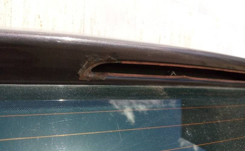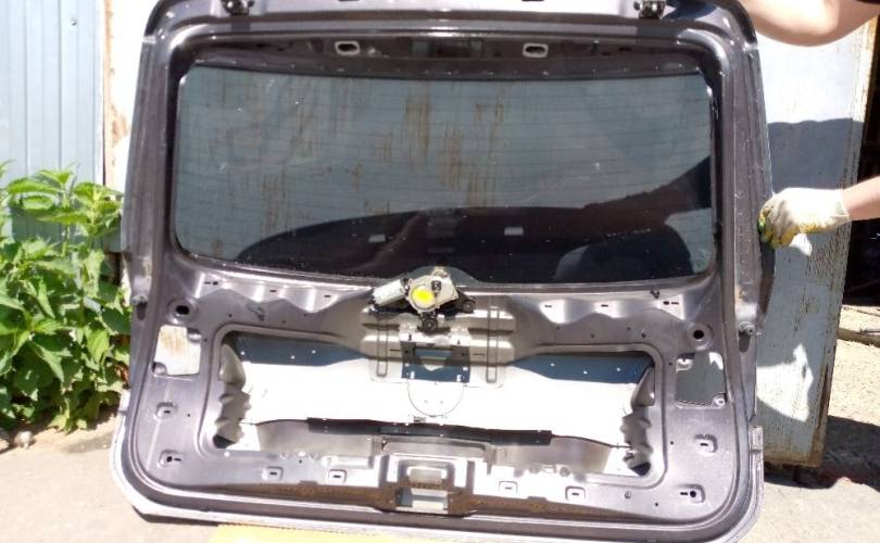 Крышка багажника со стеклом на Фольксваген Туарег II поколения в кузове НФ. Дорестайлинг до рестайлинг 2010-2014 год. Цвет черно-серый, код 9B9B.