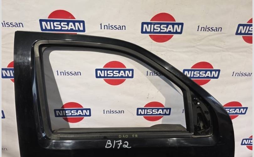 Дверь передняя R Nissan Navara D40 оригинал без дефектов в сборе , черный металик.