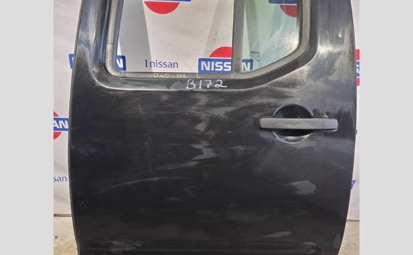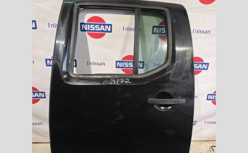Дверь задняя L Nissan Navara D40 оригинал без дефектов в сборе , черный металик.