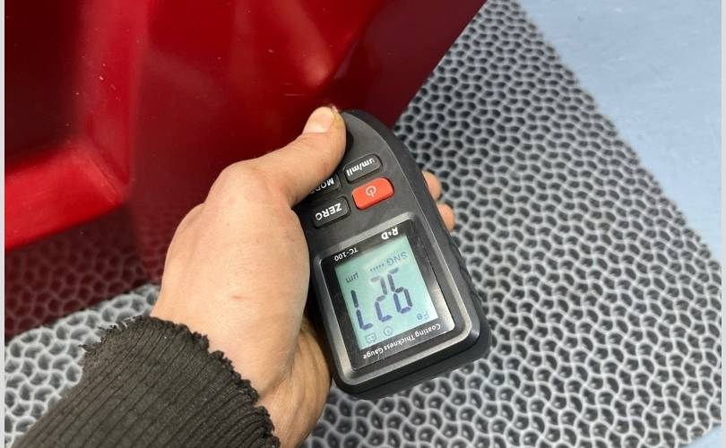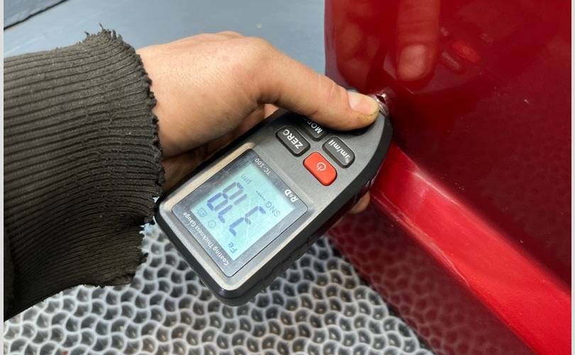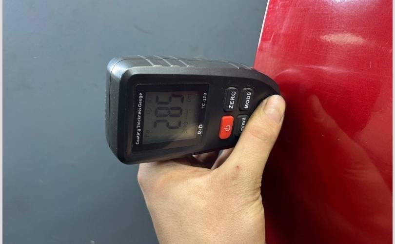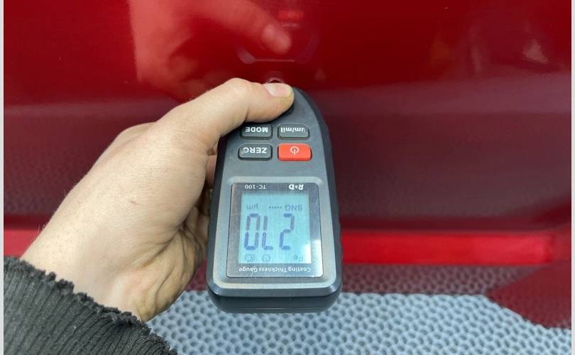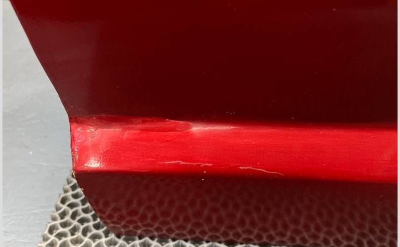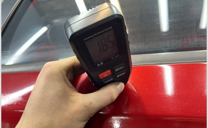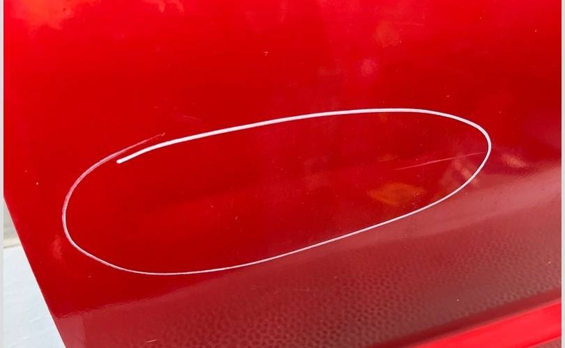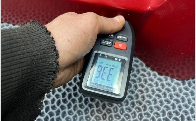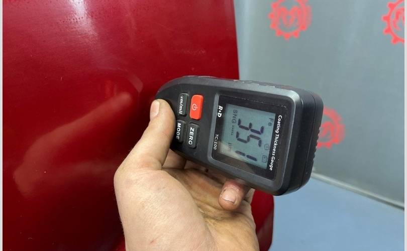 Видны следы окраса, завышены показатели толщиномера в двух зонах по нижней кромке двери! (Фото №8,9,10)