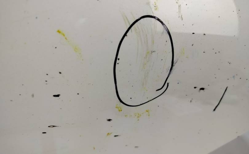 ЗАБРЫЗГАНА КРАСКОЙ.