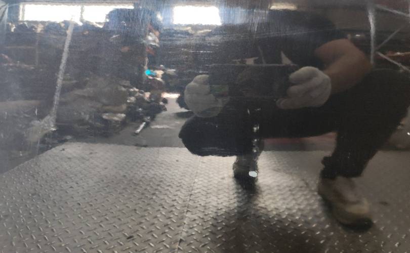 Транспортировочные царапины,имеются потёртости, есть небольшая вмятино,дефект дверной рамы в нижней части двери. Без замка и ручки