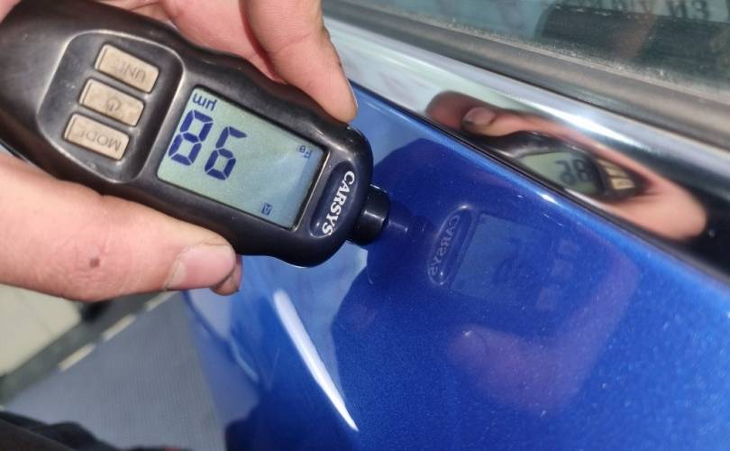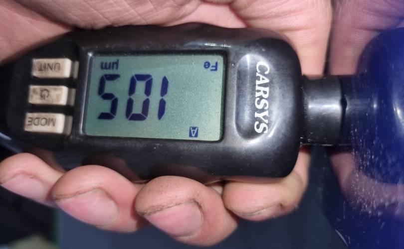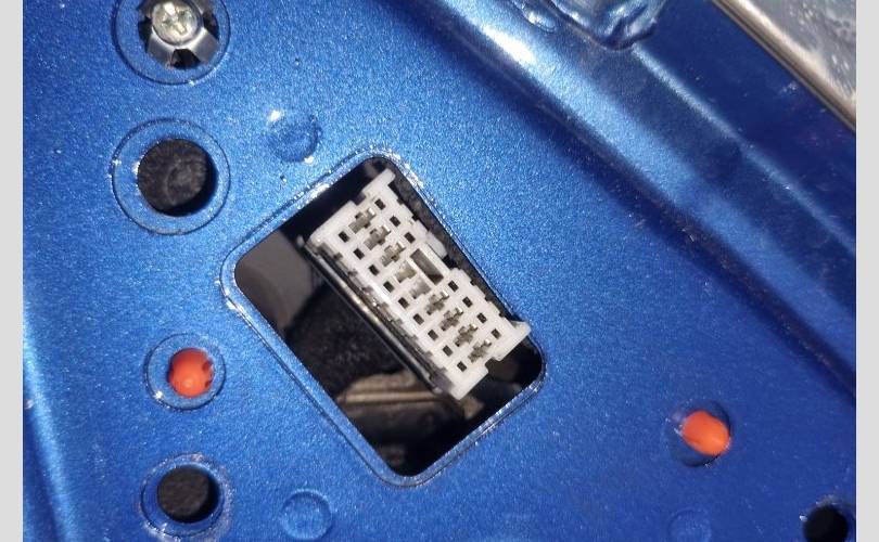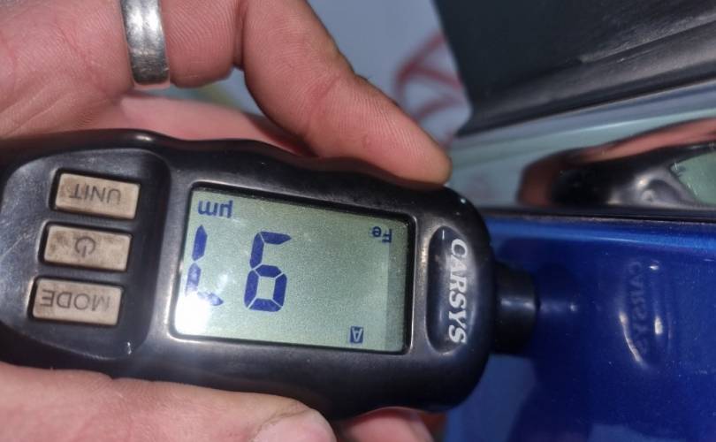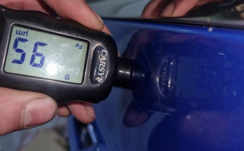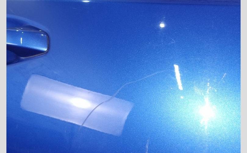 царапина в центре, сколы в нижней части, на декоративной накладке дверной карты облупилась краска