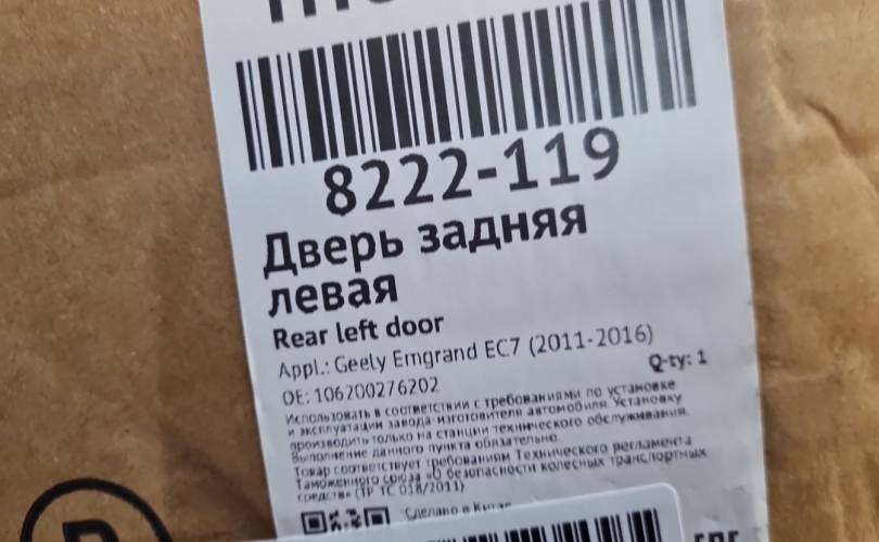 Дверь левая задняя для Geely Emgrand EC7 2008-2016