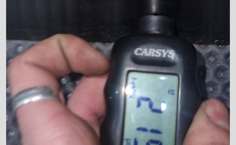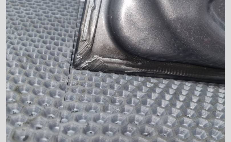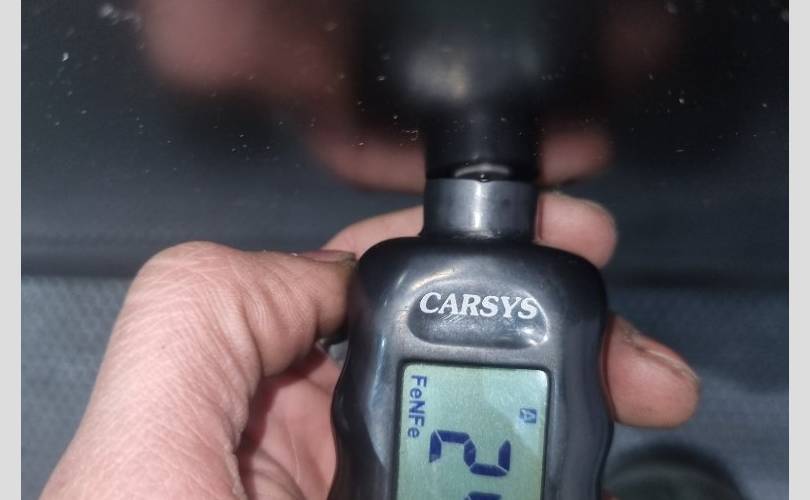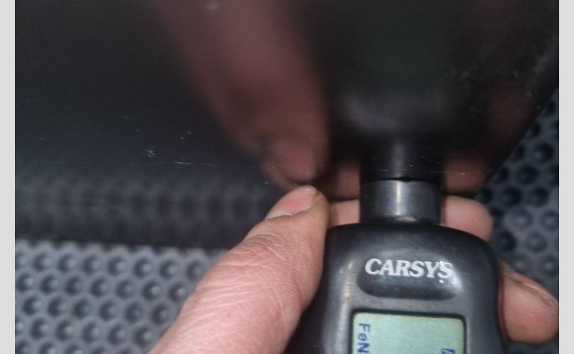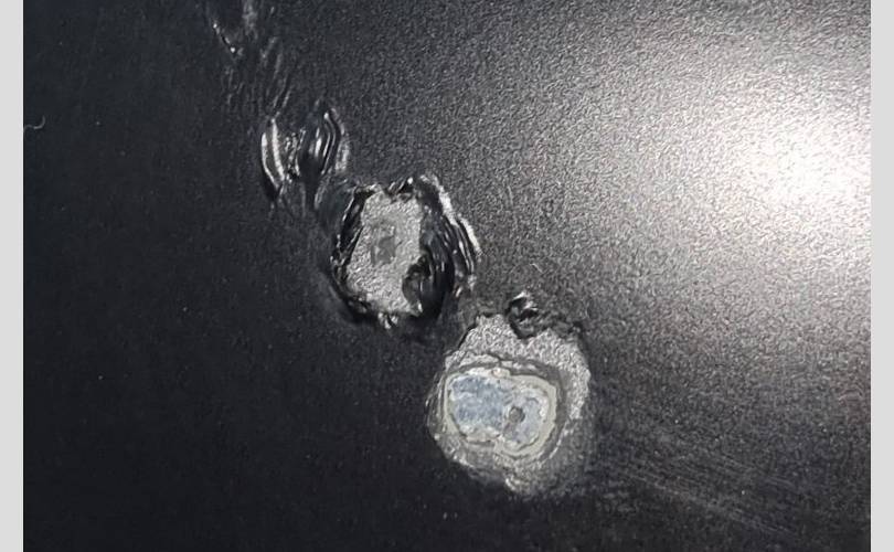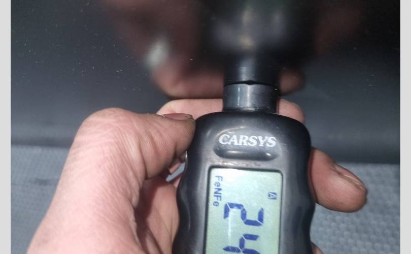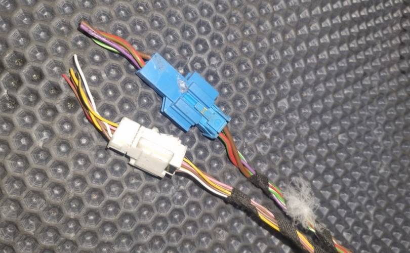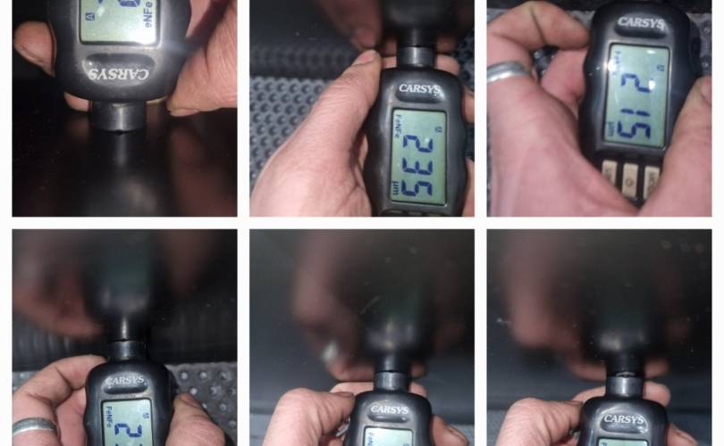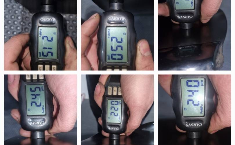 в чёрной матовой плёнке, вмятинки перед креплением зеркала, скол под ручкой, замятость на задней кромке напротив ручки