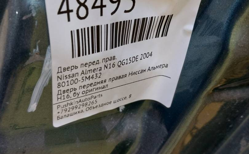 Дверь Nissan Almera 2004 801005M432 N16 QG15DE, передняя правая