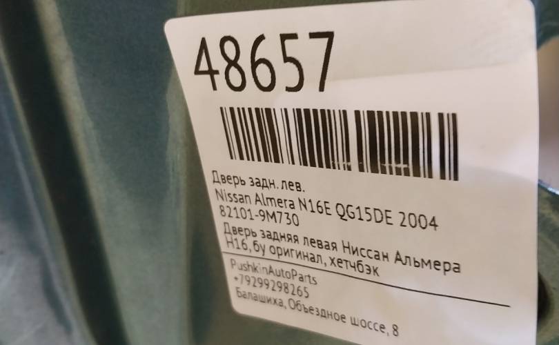 Дверь Nissan Almera 2004 821015M431 N16E QG15DE, задняя левая