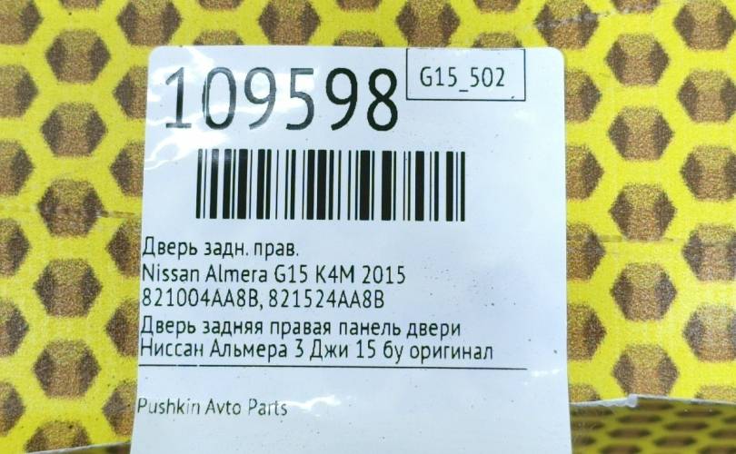 Дверь Nissan Almera 2015 821004AA8B G15 K4M, задняя правая