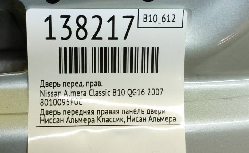 Дверь Nissan Almera Classic 2007 8010095F0C B10 QG16, передняя правая