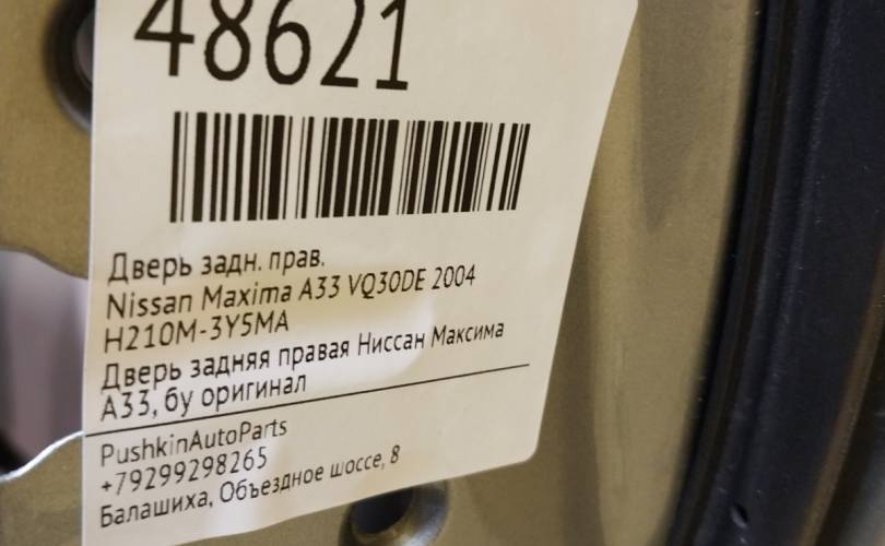 Дверь Nissan Maxima 2004 H210M3Y5MA A33 VQ30DE, задняя правая