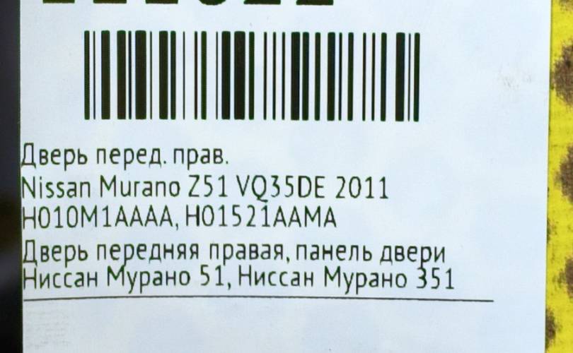 Дверь Nissan Murano 2011 H010M1AAAA Z51 VQ35DE, передняя правая