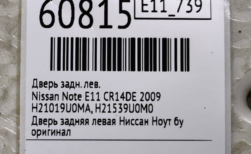 Дверь Nissan Note 2009 H21019U0MA E11 CR14DE, задняя левая