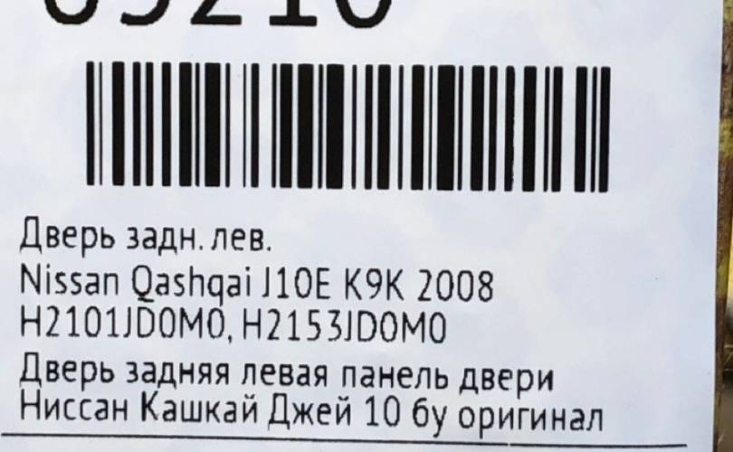 Дверь Nissan Qashqai 2008 H2101JD0M0 J10E K9K, задняя левая