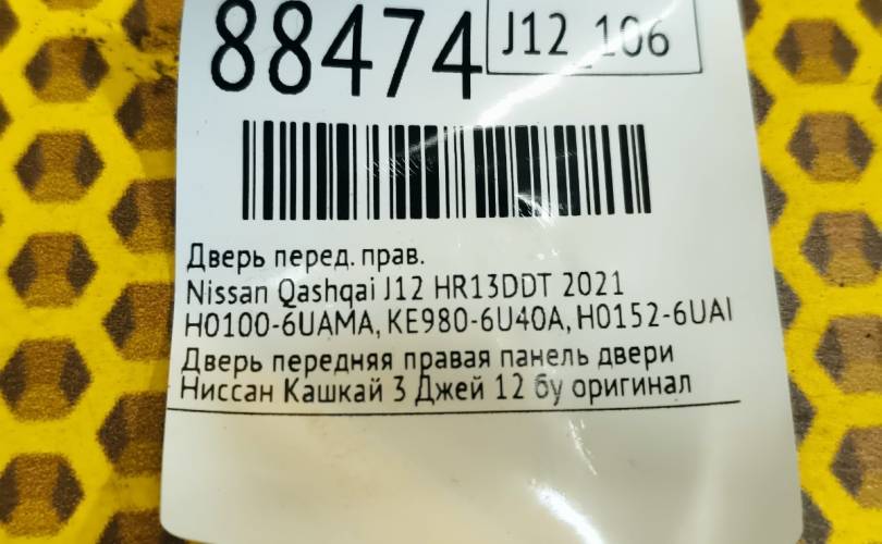 Дверь Nissan Qashqai 2021 H01006UAMA J12 HR13DDT, передняя правая