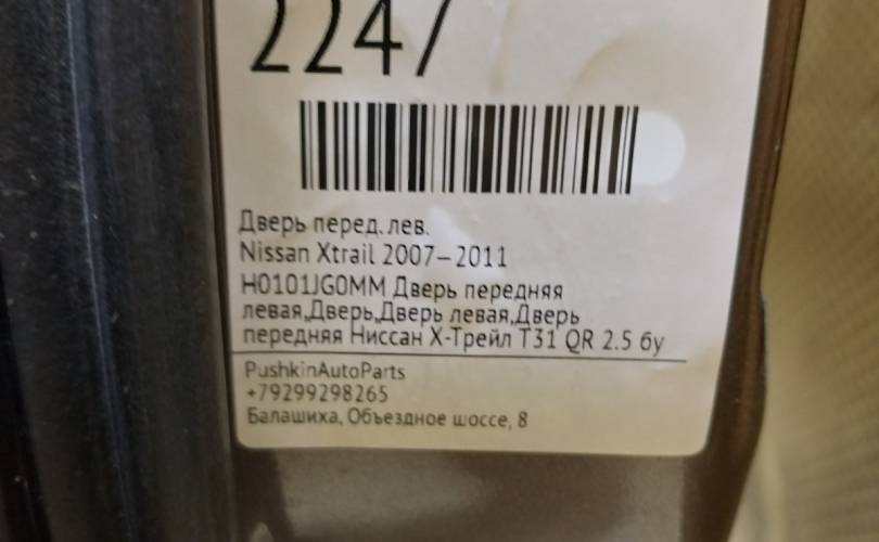 Дверь Nissan Xtrail 2007—2011 H0101JG0MM T31, передняя левая