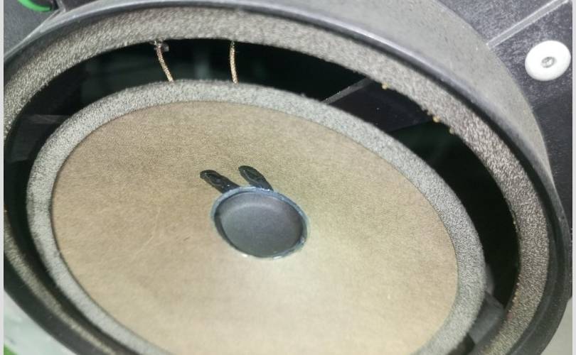 Царапины, вздутие лака и следы от упаковки. Ржавчина по нижней части. Динамик с дефектом.