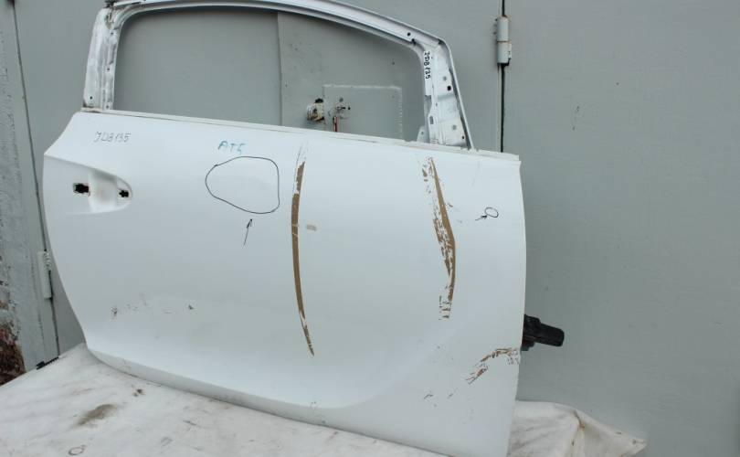 Дверь передняя правая (пассажирская, RH), голая, б/у оригинал с недостатком: по центру вмятина около 20 см в диаметре. Цвет: белый. Подходит для автомобиля Opel Astra J GTC (Опель Астра Джей купе, 3-х дверный хэтчбек) с 2011 по 2016 год выпуска.