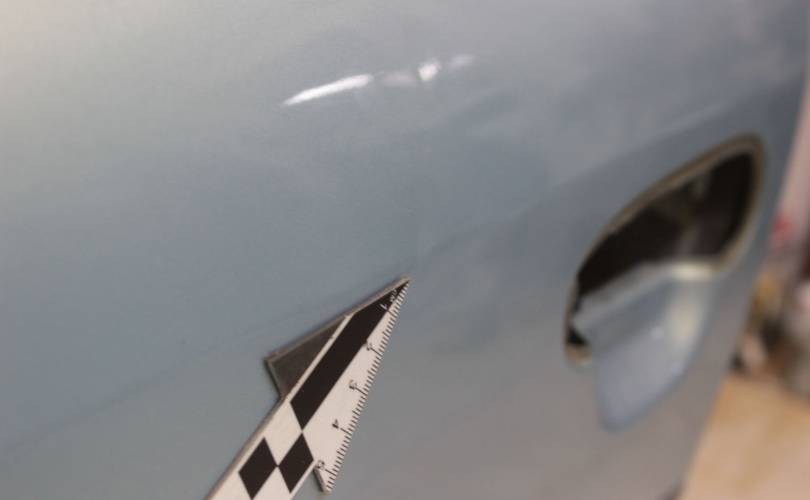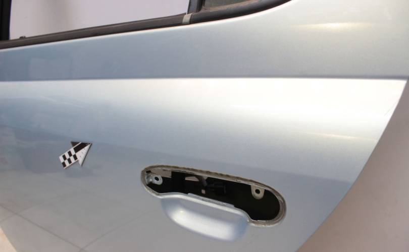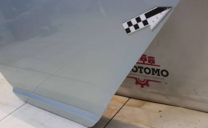 В родном цвете, без ремонтов. Жимок на ребре над ручкой двери, сколы по кромке со стороны замка, выше ручки царапина глубокая. Код цвета 8R0. Запчасть из Японии, без пробега по РФ.