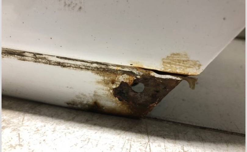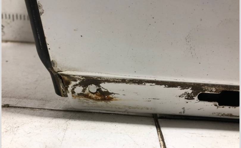 после вторичного окраса. сколы ЛКП, вмятина, поверхностная коррозия.
