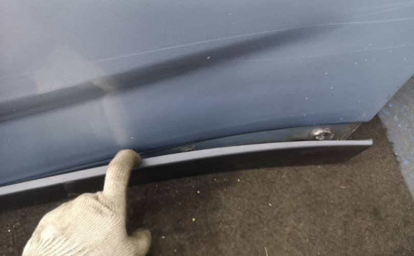 Дверь задняя левая Chevrolet Orlando, вторичный окрас, оторвалась накладка снизу. Есть вмятина над накладкой.