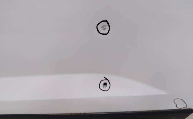 ОРИГИНАЛ.Вмятины,пробито полотно,погнут порог,вмятина на рамке.