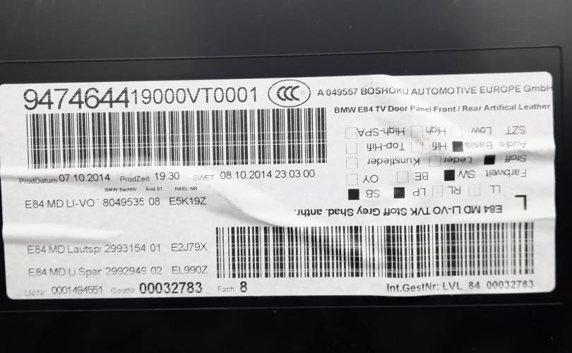 Дверная карта BMW X1 09.10.2014 51418050289 E84 N20B20A, передняя левая