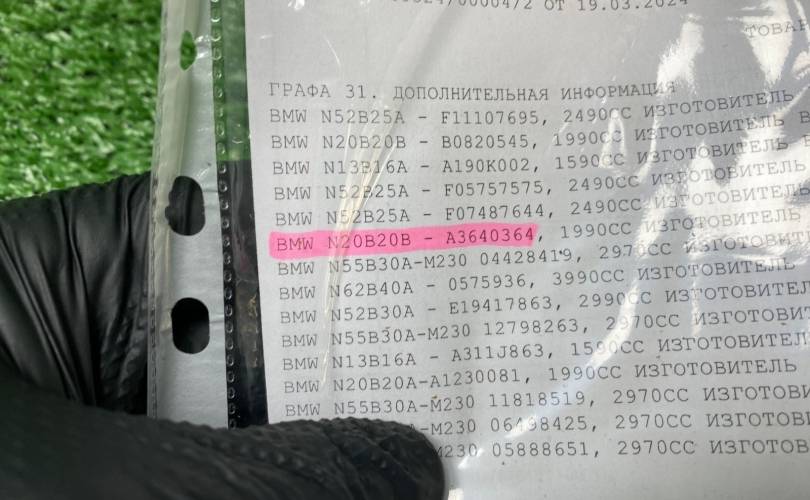 Видео запуска перед разбором, эндоскопию, а также "живые фото и видео" - направим по запросу. Комплектность отображена на фотографиях. Документы (ГТД, ДКП) в комплекте. Гарантия при установке на нашем сервисе 14 дней.